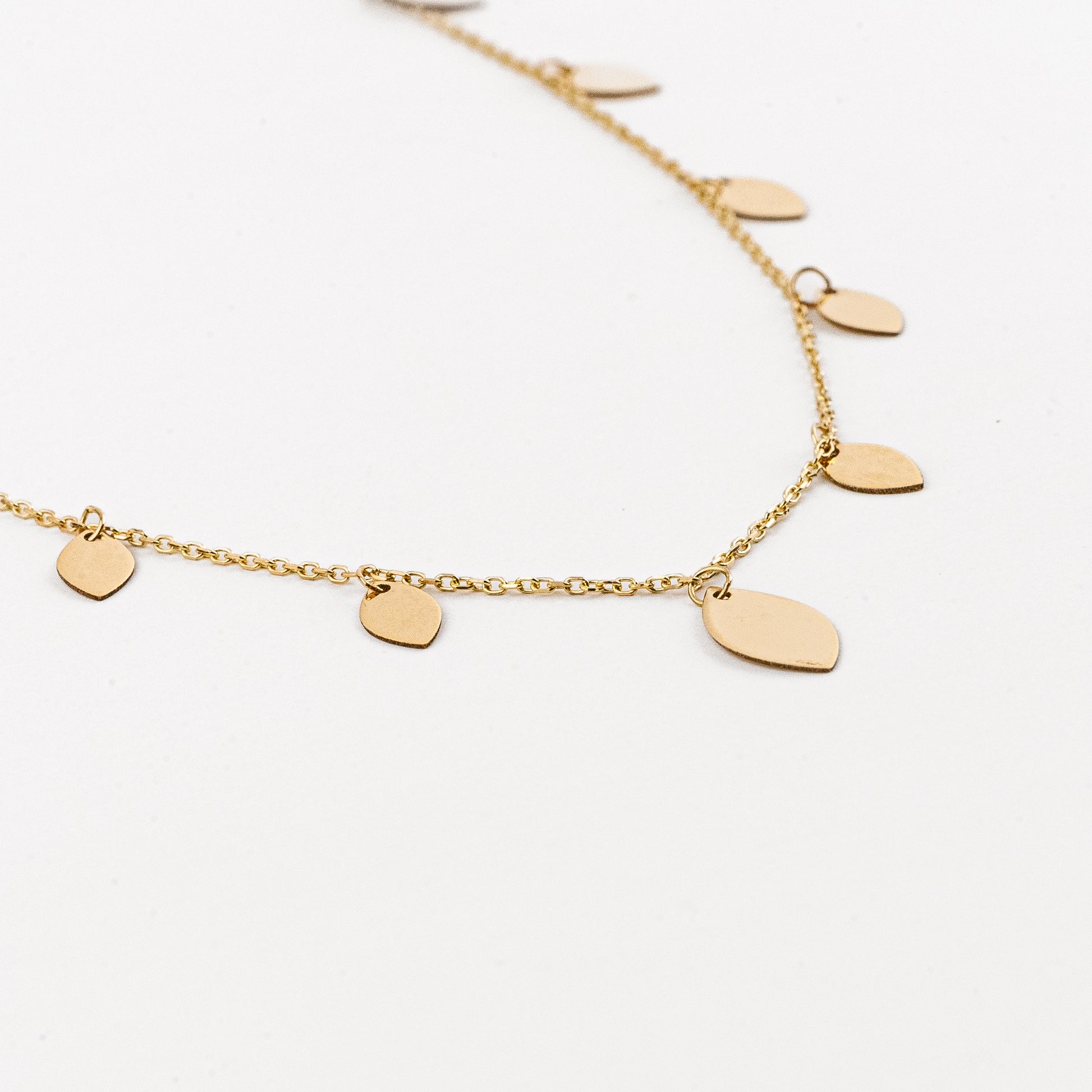 The Navette Charm Necklace features delicate boat-shaped charms that evoke a breezy, summery feel. Designed for effortless layering, this necklace adds a refined touch to any outfit, making it an expert choice for enhancing your summer jewelry collection with subtle elegance and versatility.